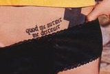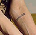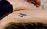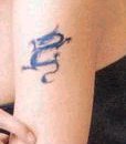 | Right arm, inside | blue box shape design (signifies change) Some people say that this is on her thigh... so when I find a pic, we will know. I am pretty sure that this is the tatt... it's the only box I have found on her. | ![]() |